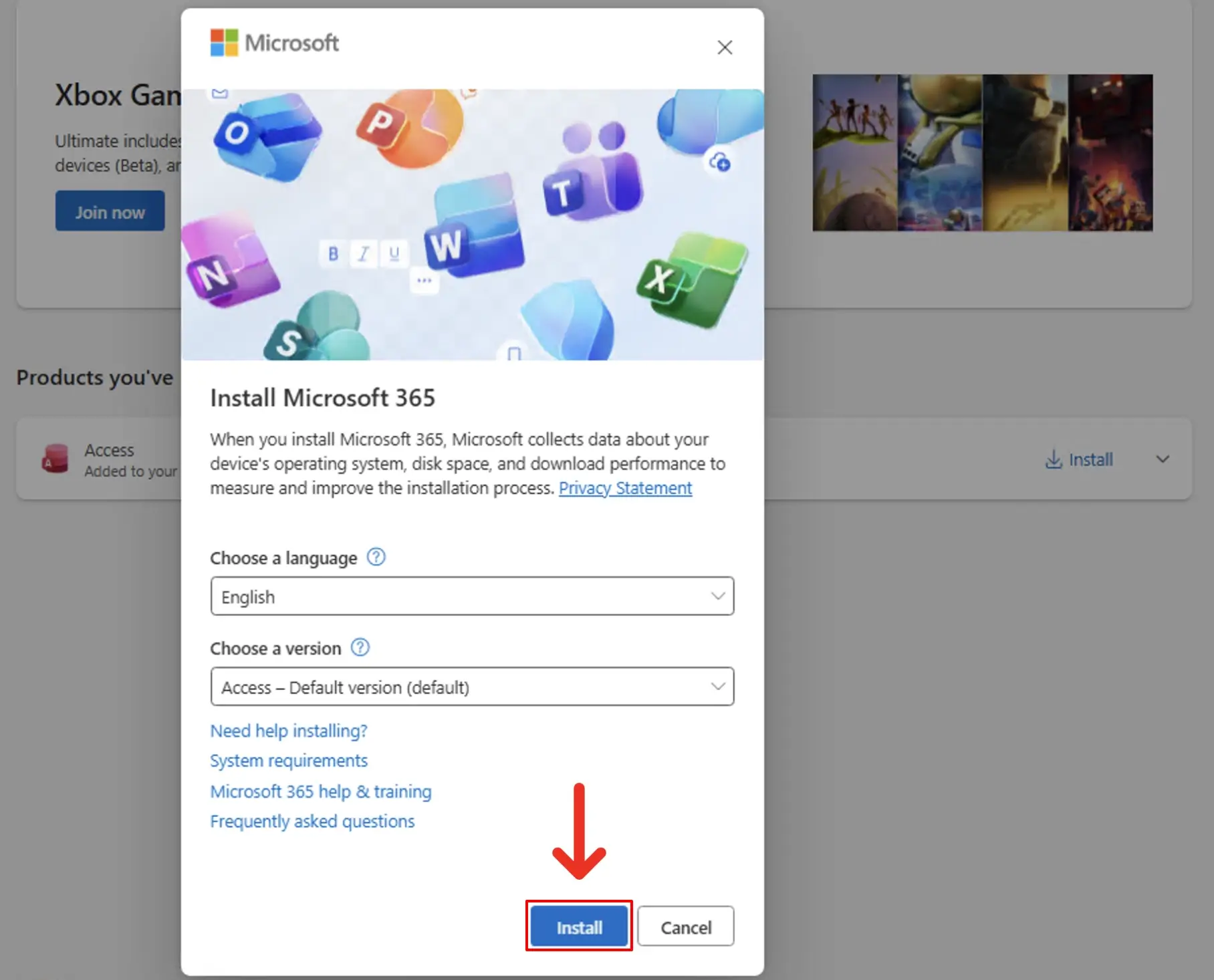 6. A window will pop up. Click "Install" to start downloading Access.