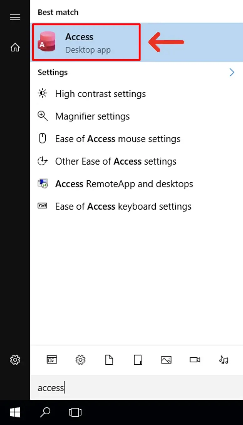 10. Open the Start menu, type "Access", and click to open it.