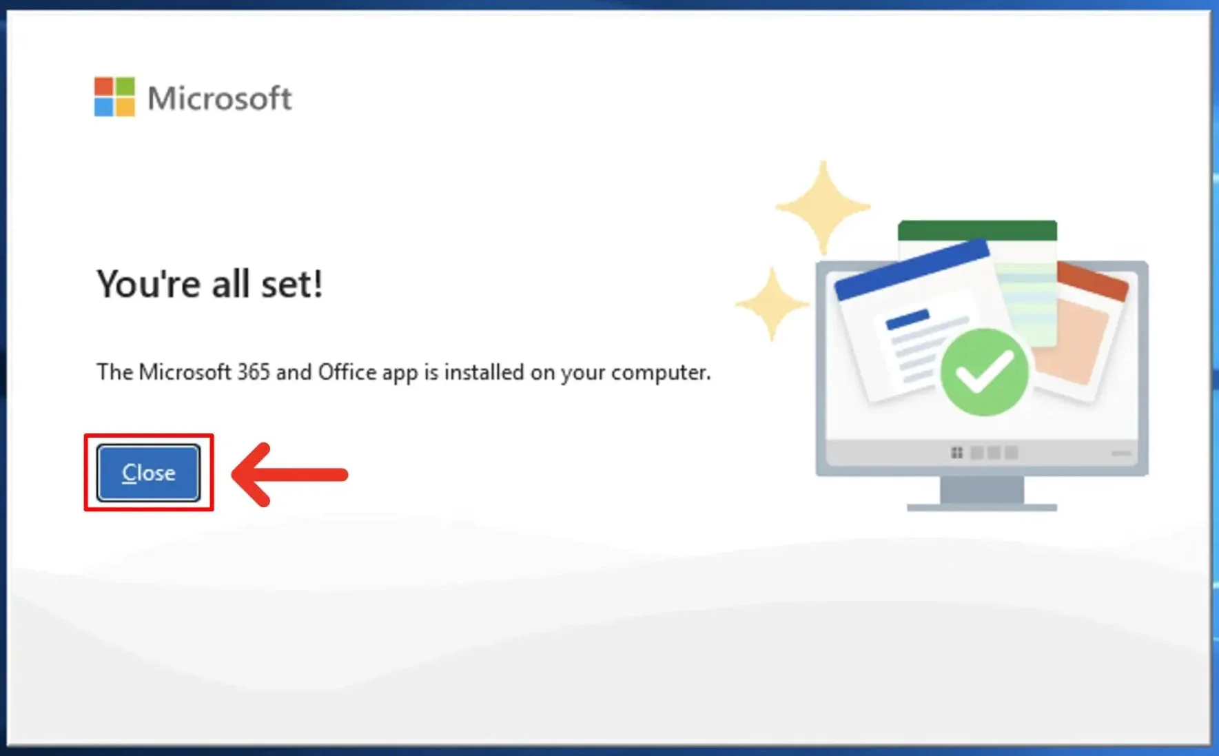 9. Once you see "You're all set!", click "Close".