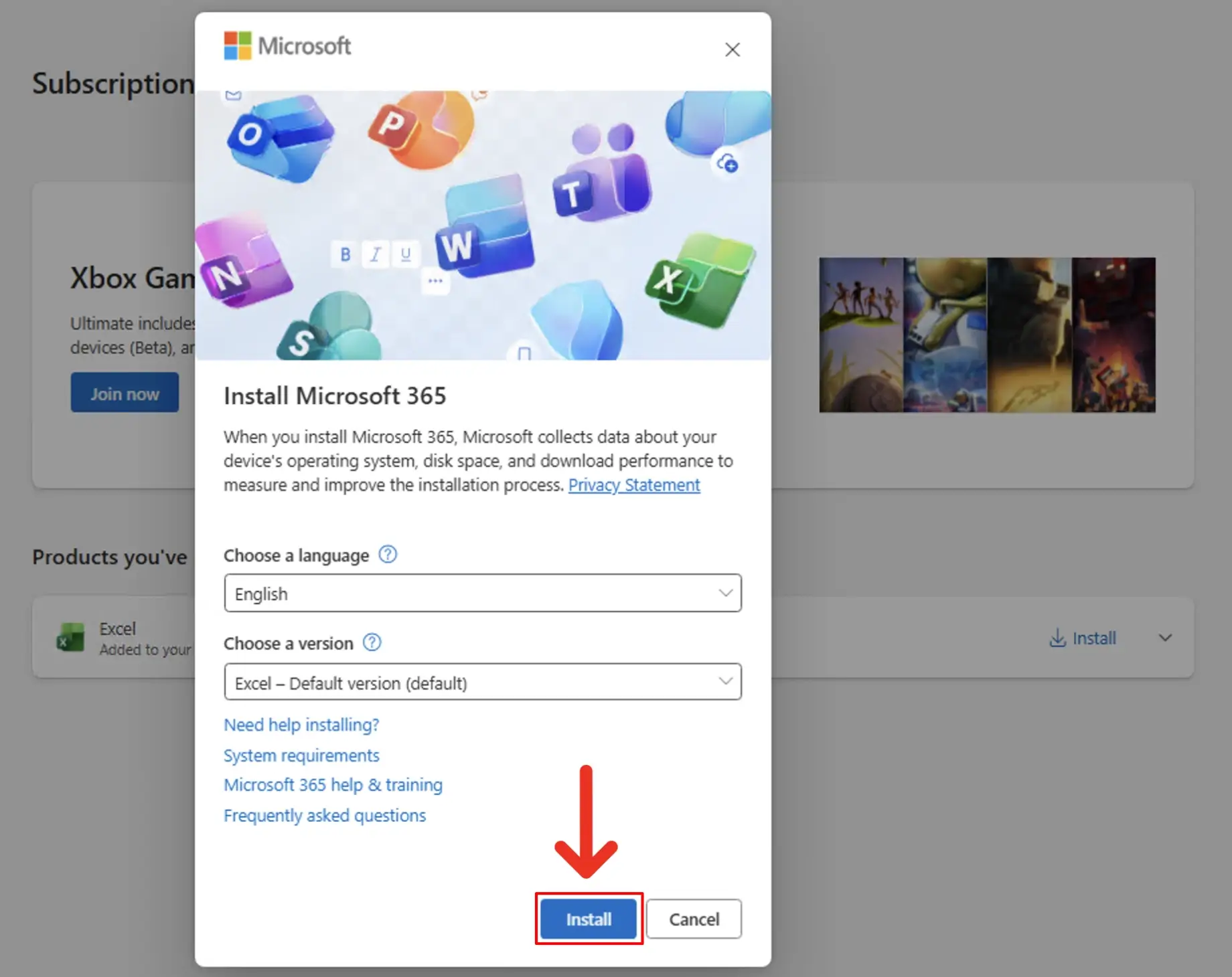 6. A window will pop up. Click "Install" to start downloading Excel.