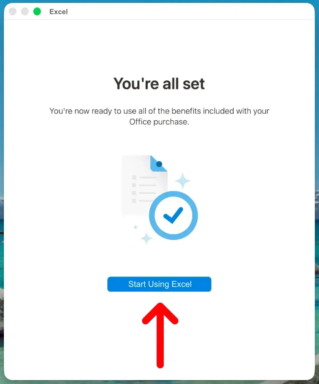 10. Once you see "You're all set", click "Start Using Excel".