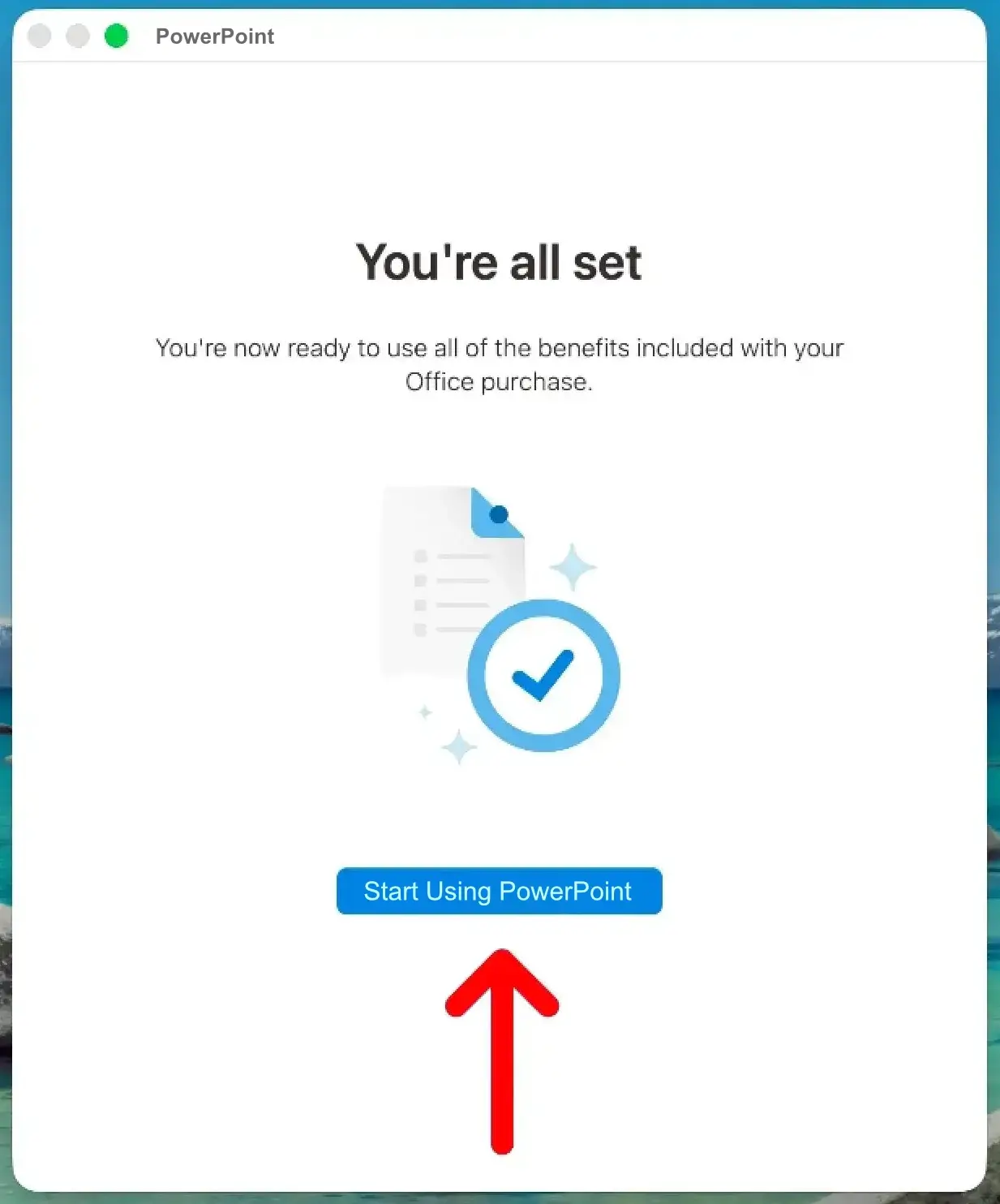 10. Once you see "You're all set", click "Start Using PowerPoint".