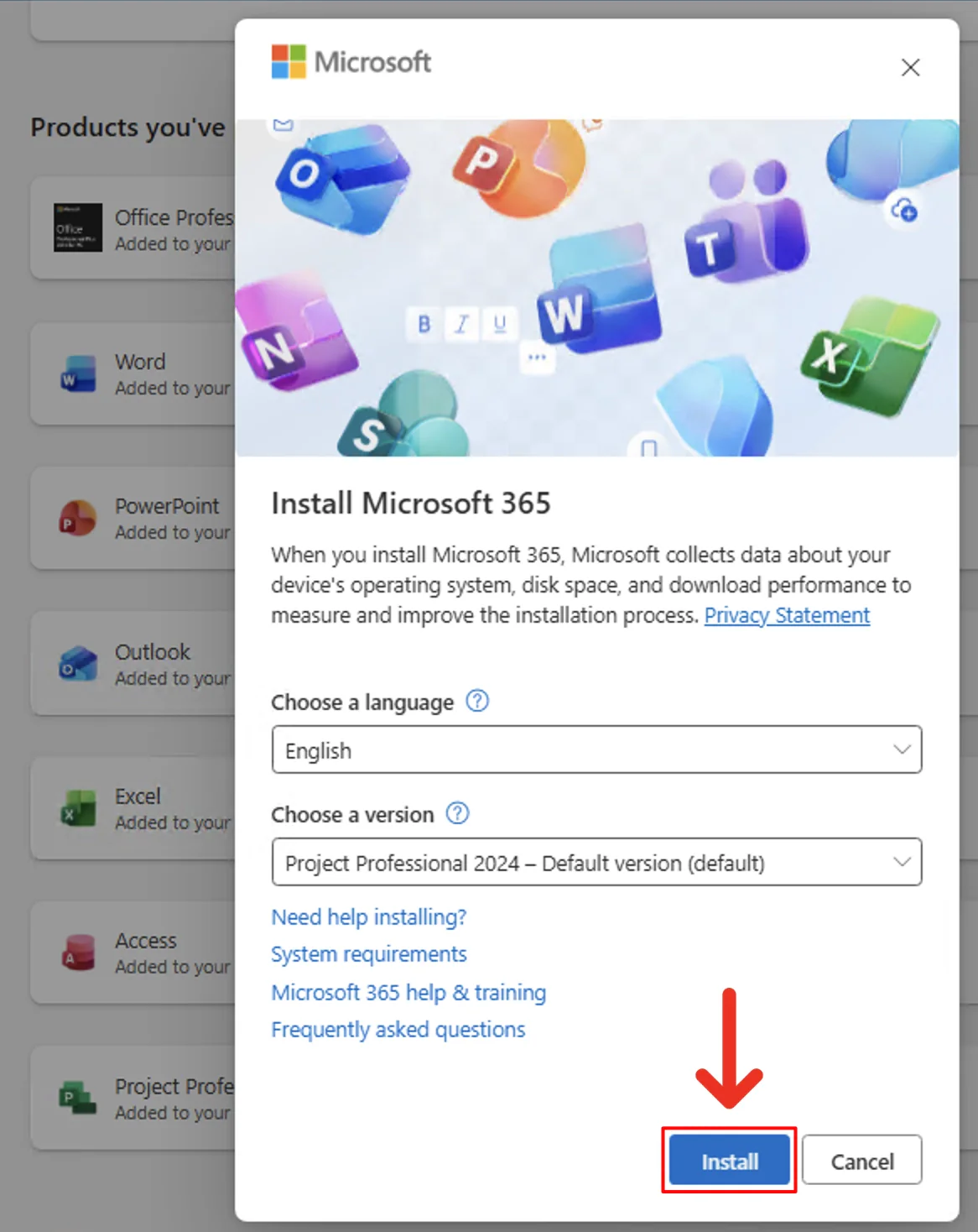 6. A window will pop up. Click "Install" to start downloading Project.