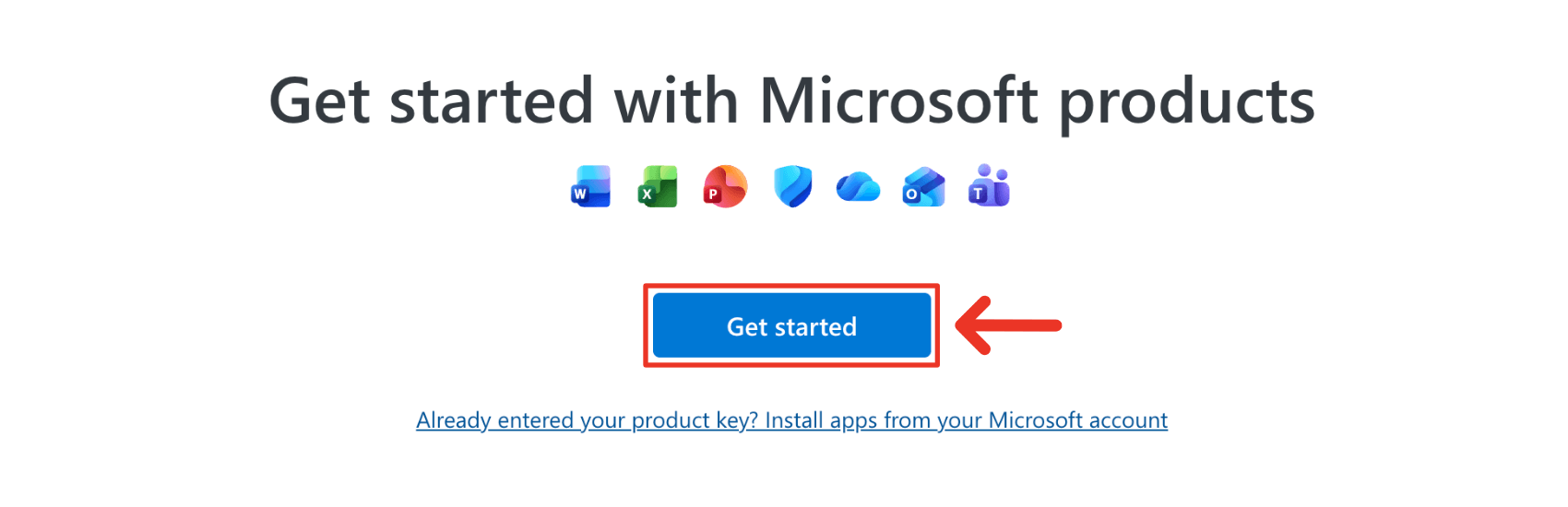 1. Go to setup.office.com and click "Get started".