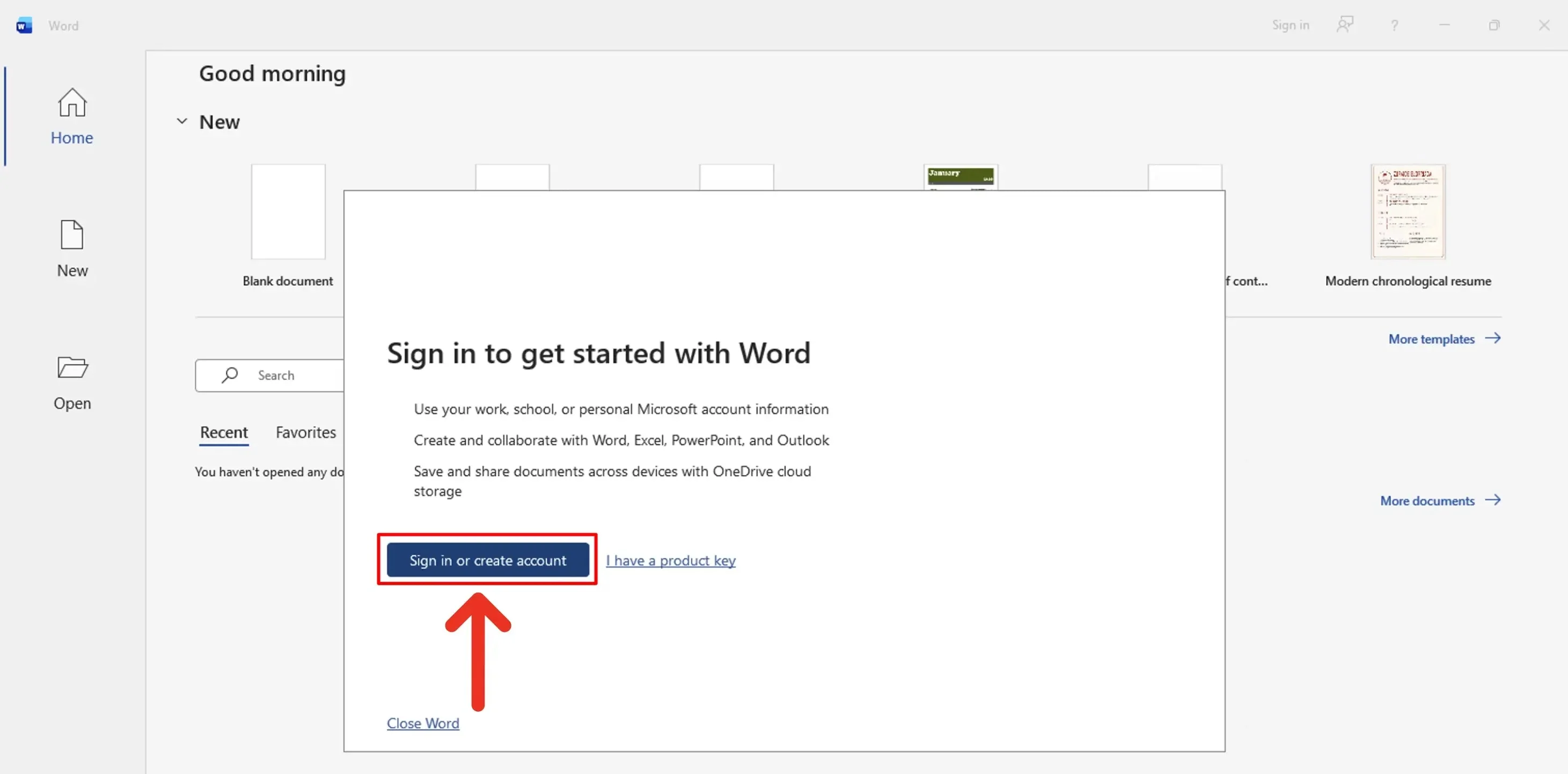 Word is now activated and ready to use.