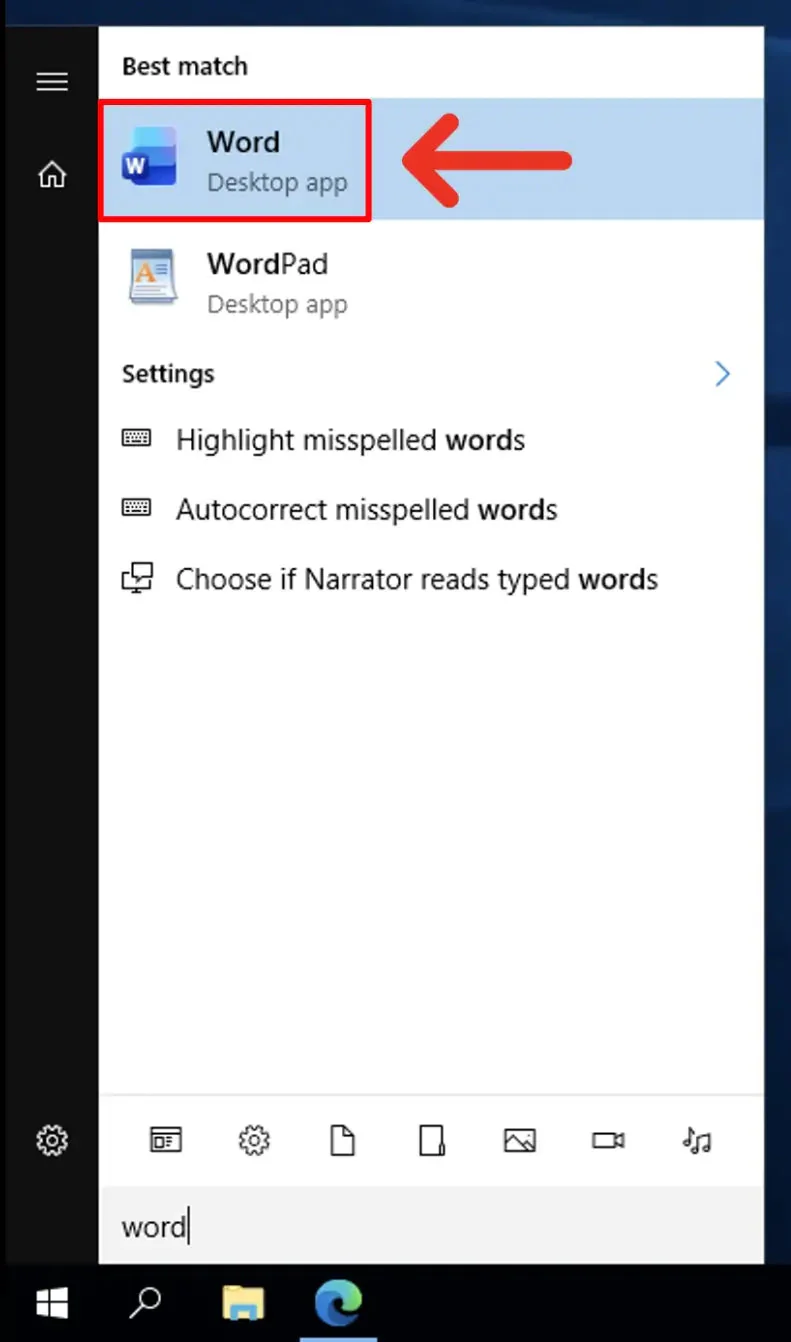 10. Open the Start menu, type "Word", and click to open it.