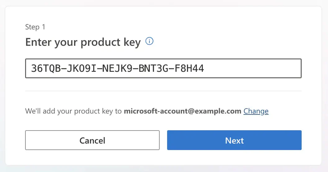 3. Enter your product key (the 25-character code you received by email) and click "Next".