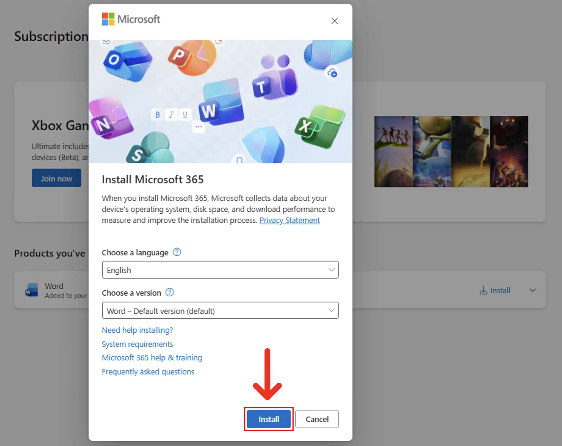 6. A window will pop up. Click "Install" to start downloading Word.