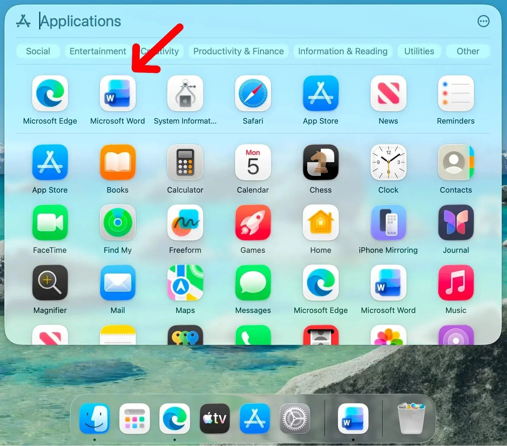 8. Once the installation is finished, open Launchpad and click on Word.