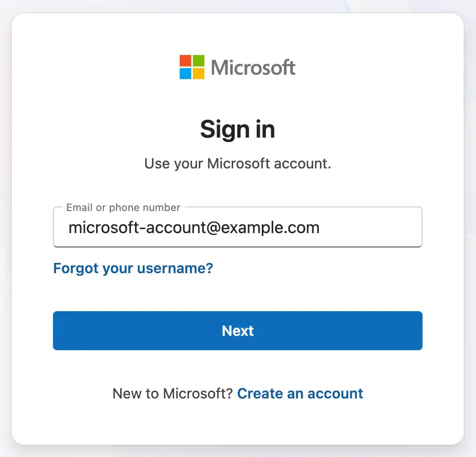 2. Sign in with your Microsoft account (the same email and password you use for Outlook, Hotmail, Live, MSN, or Xbox). If you don't have one, click "Create an account".